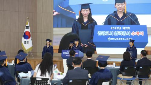 [½Åµ¿¾Æ¹æ¼Û ¿©¼ö=À̽ŵ¿±âÀÚ]Àü¶ó³²µµ±³À°Ã»Àº 26ÀÏ ¿ÀÈÄ 2½Ã û»ç 2Ãþ ´ëȸÀǽǿ¡¼­ ¡®2023³â Á¦2ȸ ÃÊ¡¤Áß¡¤°íÁ¹ °ËÁ¤°í½Ã ÇÕ°ÝÁõ¼­ ¼ö¿©½Ä¡¯À» °¡Á³´Ù. À̳¯ ¼ö¿©½Ä¿¡´Â ÃÖ°í·É ¹× ´Ù¹®È­ °¡Á¤, Çб³ ¹Û û¼Ò³â µî Ưº°ÇÑ »ç¿¬À» °¡Áø 24¸íÀÇ °ËÁ¤°í½Ã ÇÕ°ÝÀÚ°¡¡¦