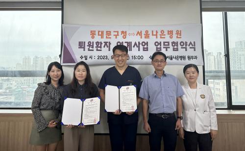 [½Åµ¿¾Æ¹æ¼Û µ¿´ë¹®=À̽ŵ¿±âÀÚ]µ¿´ë¹®±¸´Â Áö³­ 25ÀÏ ¼­¿ï³ªÀºº´¿ø(º´¿øÀå ÃÖÀ¯¿­)°ú Åð¿ø ÈÄ µ¹º½ÀÌ ÇÊ¿äÇÑ ±¸¹Îµé¿¡°Ô °ø¹é ¾ø´Â ¸ÂÃãÇü µ¹º½¼­ºñ½º¸¦ Á¦°øÇϱâ À§ÇØ ¡®Åð¿øÈ¯ÀÚ µ¹º½SOS¼¾ÅÍ ¼­ºñ½º ¿¬°è»ç¾÷¡¯ ¾÷¹« Çù¾àÀ» ü°áÇß´Ù. Çù¾àÀº Åð¿ø ÈÄ ±ä±Þµ¹º½ÀÌ ¡¦