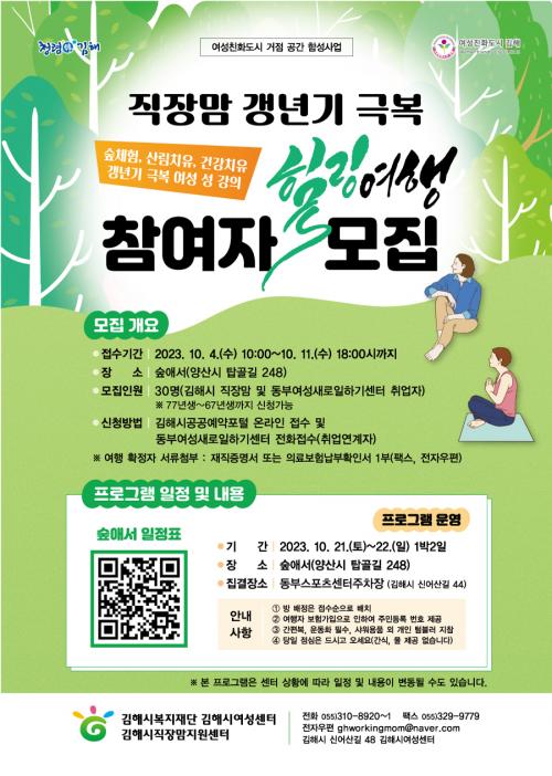 [½Åµ¿¾Æ¹æ¼Û´º½º=ÃÖ¼ÛÈ­±âÀÚ] (Àç)±èÇØ½Ãº¹ÁöÀç´Ü ±èÇØ½Ã¿©¼º¼¾ÅÍ(Á÷À帾Áö¿ø¼¾ÅÍ)´Â ¿©¼ºÄ£È­µµ½Ã °ÅÁ¡ °ø°£ ÇÔ¼º»ç¾÷ÀÇ ÀÏȯÀ¸·Î 10. 21.(Åä)~22.(ÀÏ) 1¹Ú 2ÀÏ ¡º Á÷À帾 °»³â±â ±Øº¹ Èú¸µ¿©Çà ¡»À» ¿î¿µÇÑ´Ù. À̹ø ÇÁ·Î±×·¥Àº ÀÚ°¡ ³ë·ÂÀ¸·Î ±Øº¹Çϱâ Èûµç Á÷À帾¡¦