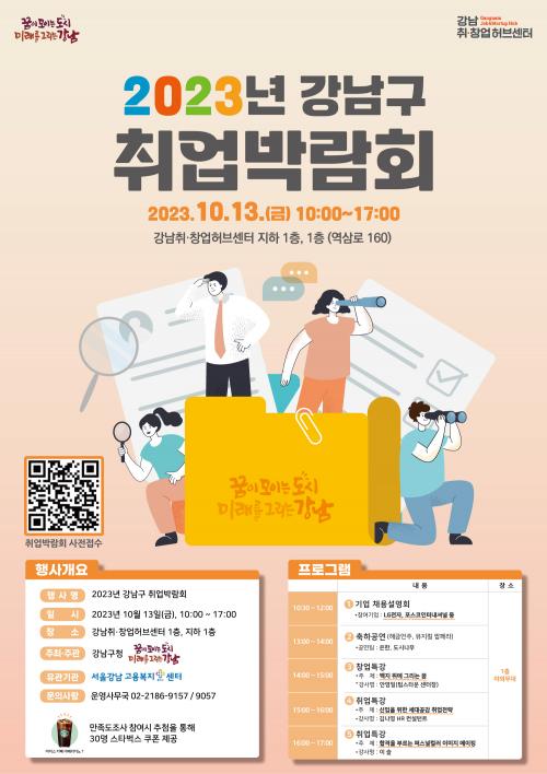 [½Åµ¿¾Æ¹æ¼Û °­³²=À̽ŵ¿±âÀÚ]°­³²±¸°¡ ¿À´Â 13ÀÏ 10½Ã~17½Ã °­³² Ã롤â¾÷Çãºê¼¾ÅÍ(¿ª»ï·Î 160)¿¡¼­ ¡®2023 °­³²±¸ Ãë¾÷¹Ú¶÷ȸ¡¯¸¦ °³ÃÖÇÑ´Ù. À̹ø Ãë¾÷ ¹Ú¶÷ȸ¿¡´Â ÄÚ½ºÇÇ »óÀå±â¾÷ÀÎ LGÀüÀÚ, Æ÷½ºÄÚÀÎÅͳ»¼Å³Î, ÄÉÀÌÆ¼¾ÆÀÌ¿¡½º¸¦ ºñ·ÔÇØ ¿Àdzî, ¾Æ°í´Ù, À̸¶Æ®¿¡¡¦