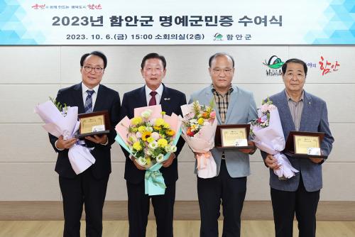 [½Åµ¿¾Æ¹æ¼Û ÇÔ¾È=À̽ŵ¿±âÀÚ]ÇԾȱºÀº Áö³­ 6ÀÏ ±ºÃ» ¼ÒȸÀǽǿ¡¼­ °ú°Å ÇԾȱº ºÎ±º¼ö·Î ÀçÁ÷ÇÑ ÀÌ»ïÈñ, ±èÁذ£, Á¶±ÔÈ£(ÀÌ»ó Àü ÇԾȱº ºÎ±º¼ö), Å뿪»ç À±ÂùÀº, Àü Á¦ÁÖ ³ëÇüµ¿ ÁÖ¹ÎÀÚÄ¡À§¿øÀå Çö½ÂÀü ¾¾¿¡°Ô ¸í¿¹±º¹ÎÁõ°ú ÆÐ¸¦ ¼ö¿©Çß´Ù°í ¹àÇû´Ù. ¸í¿¹±º¹ÎÁõ¡¦