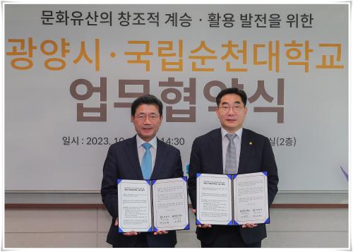 [½Åµ¿¾Æ¹æ¼Û=¹Ú±¤¿Á±âÀÚ] ±¤¾ç½Ã´Â ±¹¸³¼øÃµ´ëÇб³¿Í Áö³­ 11ÀÏ ½Ãû Á¢°ß½Ç¿¡¼­ ¹®È­À¯»êÀÇ Ã¢Á¶Àû °è½Â¡¤È°¿ë¹ßÀüÀ» À§ÇÑ »óÈ£ Çù·ÂÀ» À§ÇØ ¾÷¹«Çù¾àÀ» ü°áÇß´Ù°í ¹àÇû´Ù. À̹ø Çù¾à½Ä¿¡´Â Á¤ÀÎÈ­ ±¤¾ç½ÃÀåÀ» ºñ·ÔÇÑ °ü°è°ø¹«¿ø°ú À̺´¿î ¼øÃµ´ëÇб³ ÃÑÀå, ¾ç¼÷Ç⡦