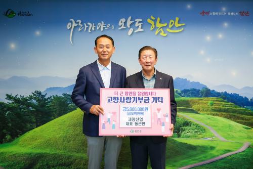 [½Åµ¿¾Æ¹æ¼Û ÇÔ¾È=À̽ŵ¿±âÀÚ]ÇԾȱºÀº 19ÀÏ ±ººÏ¸é ¸ð·Î³ó°ø´ÜÁö ³» ¼¼±¤»ê¾÷ µ¿±ÙÇÑ ´ëÇ¥°¡ ÇԾȱº¿¡ °íÇâ»ç¶û±âºÎ±Ý ÃÖ°í¾×ÀÎ 500¸¸¿øÀ» ±âŹÇß´Ù°í ¹àÇû´Ù. ¼¼±¤»ê¾÷ µ¿±ÙÇÑ ´ëÇ¥´Â ¡°¿ÃÇØ ù ½ÃÇà ÁßÀÎ °íÇâ»ç¶û±âºÎÁ¦¿¡ µ¿ÂüÇÏ°Ô µÇ¾î ±â»Ú°í, À̹ø ±âºÎ¸¦ Å롦