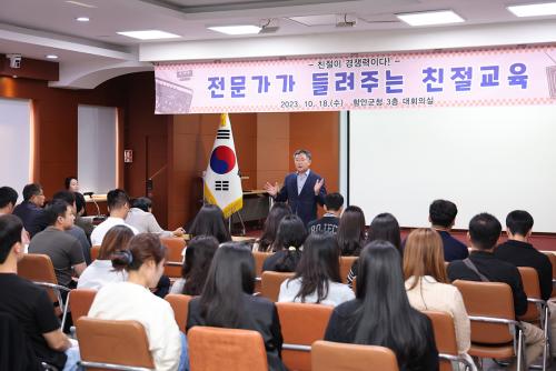 [½Åµ¿¾Æ¹æ¼Û ÇÔ¾È=À̽ŵ¿±âÀÚ]ÇԾȱºÀº Áö³­ 18ÀÏ ±ºÃ» 3Ãþ ´ëȸÀǽǿ¡¼­ °øÁ÷ÀÚ 50¿© ¸íÀÌ Âü¼®ÇÑ °¡¿îµ¥ ±º¹ÎÀÇ ±â´ë¿¡ ºÎÀÀÇÏ´Â ¹Î¿ø ¼­ºñ½º¿Í ÇàÁ¤¼­ºñ½º¸¦ Á¦°øÇϱâ À§ÇØ ¡®Á÷¿ø Ä£Àý±³À°¡¯À» ½Ç½ÃÇß´Ù. À̹ø Á÷¿ø Ä£Àý±³À°Àº ±×µ¿¾ÈÀÇ ±³À° ¹æ½Ä¿¡¼­ ¹þ¾î³ª ¿¬¡¦