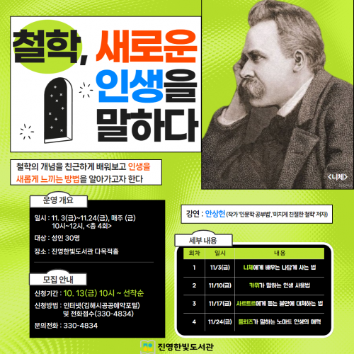 [½Åµ¿¾Æ¹æ¼Û´º½º=ÃÖ¼ÛÈ­±âÀÚ] ±èÇØ½Ã Áø¿µÇѺûµµ¼­°üÀº öÇÐÀ» Ä£±ÙÇÏ°Ô ¹è¿ö öÇаú °¡±î¿öÁö´Â °è±â¸¦ ¸¸µé°í öÇÐÀ» ÅëÇØ ÀλýÀ» »õ·Ó°Ô ´À³¢´Â ¹æ¹ýÀ» ¾Ë¾Æ°¡°íÀÚ 11¿ù 3ÀϺÎÅÍ 11¿ù 24ÀϱîÁö ¸ÅÁÖ ±Ý¿äÀÏ 11¿ù ÇÑ ´Þ°£ ¡®Ã¶ÇÐ, »õ·Î¿î ÀλýÀ» ¸»ÇÏ´Ù¡¯ °­¿¬À» ¿î¿µ¡¦