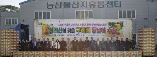[½Åµ¿¾Æ¹æ¼Û=À±¼ºÁÖ ±âÀÚ] Àü³² ±¸·Ê¿¡¼­ »ý»êµÈ ¹è°¡ ¼öÃâ±æ¿¡ ¿Ã¶ú´Ù. ³ó»ê¹° ±¹³» °¡°Ý ¾ÈÁ¤°ú ³ó°¡ ¼Òµæ Áõ´ë¸¦ À§ÇØ Àû±ØÀûÀÎ ¼öÃâ Àå·Á Á¤Ã¥À» ÆîÄ¡´Â ±¸·Ê±ºÀº ±¸·Ê±º ÀÇȸ, ±¸·Ê³óÇù ÀÓÁ÷¿ø°ú »ý»ê³ó¾÷Àΰú ÇÔ²² 2023³â 10¿ù 24ÀÏ ±¸·Ê³óÇù»êÁöÀ¯Åë¼¾ÅÍ(APC¡¦