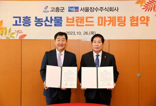[½Åµ¿¾Æ¹æ¼Û=¹Ú±¤¿Á±âÀÚ] °íÈﱺ(±º¼ö °ø¿µ¹Î)Àº 26ÀÏ ¼­¿ï ³ë¿ø±¸¿¡¼­ ¼­¿ïÀå¼öÁÖ½Äȸ»ç¿Í ¡®°íÈï ³ó»ê¹° ºê·£µå ¸¶ÄÉÆÃ °­È­¸¦ À§ÇÑ ¾÷¹«Çù¾à¡¯À» ü°áÇß´Ù°í ¹àÇû´Ù. À̳¯ Çù¾à½Ä¿¡´Â °ø¿µ¹Î °íÈﱺ¼ö¸¦ ºñ·ÔÇØ ¹èÀ±»ó ¼­¿ïÀå¼öÁÖ½Äȸ»ç ´ëÇ¥¿Í °ü°è ÀÓÁ÷¿øµéÀÌ ¡¦