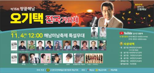 [½Åµ¿¾Æ¹æ¼Û = ½Å°æ½Ä ±âÀÚ] Á¦16ȸ '¶¥³¡ ÇØ³² ¿À±âÅð¡¿äÁ¦'´Â Àü³² ÇØ³²±ºÀÇ ¡®Çس²¹Ì³²ÃàÁ¦¡¯, Ư¼³¹«´ë¿¡¼­ ¿À±âÅÃÀ» ±â¸®´Â ¹«´ë·Î, 2013³â»ý ÀÌ»ó ´ëÇѹα¹ ±¹¹ÎÀ̸é Âü¿©ÇÒ ¼ö ÀÖ´Â À̺¥Æ®ÀÔ´Ï´Ù. º» °¡¿äÁ¦´Â 11¿ù 4ÀÏ Åä¿äÀÏ¿¡ Àü³² ÇØ³²±º ÇØ³²¹Ì³²ÃàÁ¦ Ư¼³¡¦
