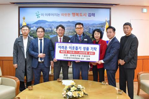 [½Åµ¿¾Æ¹æ¼Û´º½º=ÃÖ¼ÛÈ­±âÀÚ] ±èÇØ½Ã´Â 6ÀÏ ¢ßÈ«´ç¹«(´ëÇ¥ º¯¼ø¿µ)¿Í (»ç)Çѱ¹±âÀÚ¿¬ÇÕȸ ´ë±¸¡¤°æºÏ(ȸÀå ½ÉÇöº¸)¿¡¼­ ¾î·Á¿î ÀÌ¿ôÀ» À§ÇØ ½á´Þ¶ó¸ç ü¿Â°è 700°³(1,000¸¸¿ø »ó´ç)À» °øµ¿ ±âŹÇß´Ù°í ¹àÇû´Ù. ±âŹµÈ ü¿Â°è´Â Á¾ÇÕ»çȸº¹Áö°ü°ú ³ëÀΡ¤Àå¾ÖÀκ¹Áö°ü¿¡¡¦