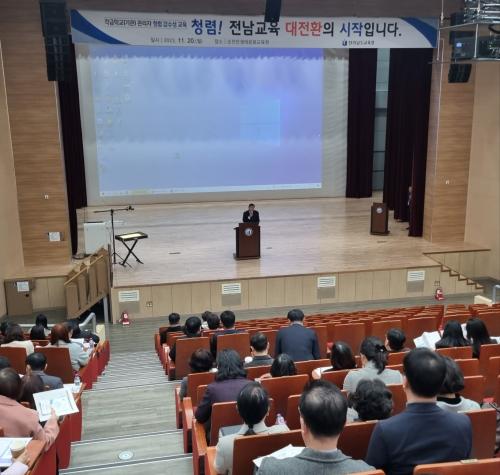 [½Åµ¿¾Æ¹æ¼Û ¿©¼ö=À̽ŵ¿±âÀÚ]Àü¶ó³²µµ±³À°Ã»(±³À°°¨ ±è´ëÁß)ÀÌ 11¿ù 20ÀÏ, 27ÀÏ ¼øÃµ¸¸»ýŹ®È­±³À°¿ø°ú 22ÀÏ, 23ÀÏ Àü³²±³À°Ã»±³À°¿¬±¸Á¤º¸¿ø¿¡¼­ ÃÑ ³× Â÷·Ê¿¡ °ÉÃÄ Á÷Àå ³» ±«·ÓÈû ¿¹¹æ ¹× û·Å °¨¼ö¼º Çâ»óÀ» À§ÇÑ ±³À°À» ½Ç½ÃÇÑ´Ù. °¢±ÞÇб³ ±³(¿ø)°¨, ÇàÁ¤½ÇÀ塦