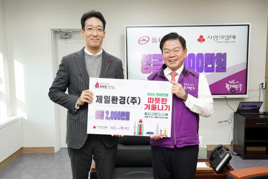 [½Åµ¿¾Æ¹æ¼Û µ¿´ë¹®=À̽ŵ¿±âÀÚ]µ¿´ë¹®±¸´Â 21ÀÏ ¿ÀÀü 9½Ã, Á¦ÀÏȯ°æ(´ëÇ¥ ÇÑÁø¿í)¿¡¼­ ¾î·Á¿î ÀÌ¿ôÀ» À§ÇÑ µû¶æÇÑ °Ü¿ï³ª±â ¼º±Ý 2,000¸¸ ¿øÀ» ±âŹÇß´Ù°í ¹àÇû´Ù. À̳¯ ±¸Ã» 5Ãþ ±¸Ã»Àå Á¢°ß½Ç¿¡¼­ ÁøÇàµÈ ±âŹ½Ä¿¡´Â ÀÌÇÊÇü µ¿´ë¹®±¸Ã»Àå°ú Á¦ÀÏȯ°æ ÇÑÁø¿í ´ëÇ¥, ÀÌ¡¦