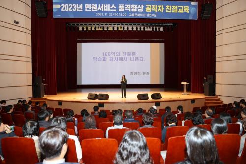 [½Åµ¿¾Æ¹æ¼Û°íÈï=¹Ú±¤¿Á±âÀÚ] °íÈﱺ(±º¼ö °ø¿µ¹Î)Àº Áö³­ 22ÀÏ °íÈïÁ¾ÇÕ¹®È­È¸°ü ±è¿¬¼ö½Ç¿¡¼­ ±º¡¤À¾¸é °øÁ÷ÀÚ 500¿© ¸íÀ» ´ë»óÀ¸·Î ÇϹݱ⠹οø¼­ºñ½º ǰ°ÝÇâ»óÀ» À§ÇÑ °øÁ÷ÀÚ Ä£Àý±³À°À» ½Ç½ÃÇß´Ù. À̹ø Ä£Àý±³À°Àº ¿Ã ÇÑ ÇØ µ¿¾È °øÁ÷ÀÚ ¹Î¿øÀÀ´ë ¼­ºñ½º ¼öÁØÀ»¡¦