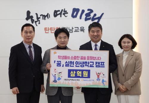 [½Åµ¿¾Æ¹æ¼Û ¿©¼ö=À̽ŵ¿±âÀÚ]Àü³²¹Ì·¡±³À°Àç´ÜÀÌ 11¿ù 27ÀÏ NH³óÇùÀºÇà Àü³²º»ºÎ·ÎºÎÅÍ 3¾ï ¿øÀÇ Æ¯º°ÇÑ¡®ÀåÇбâ±Ý¡¯À» Àü´Þ¹Þ¾Æ ¡®²Þ ½ÇÇö±Ý¡¯°ú ¡®²Þ ½ÇÇö ÀλýÇб³¡¯¶ó´Â »õ·Î¿î ÇüÅÂÀÇ ÀåÇлç¾÷À» ½ÃÀÛÇÑ´Ù. Àü´Þ½Ä¿¡´Â ±è´ëÁß ÀÌ»çÀåÀ» ºñ·ÔÇØ Á¤ÀçÇå NH³óÇù¡¦