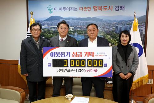 Àå¾ÖÀÎÇ¥ÁØ»ç¾÷Àå ¢ß´Ù¿Ã, ±èÇØ½Ã¿¡ ¼º±Ý 300¸¸¿ø ±âŹ