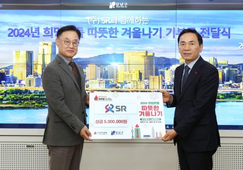 [½Åµ¿¾Æ¹æ¼Û °­³²=À̽ŵ¿±âÀÚ]°­³²±¸°¡ 30ÀÏ ±¸Ã»¿¡¼­ ¢ßSR°¡ ÇÔ²²ÇÏ´Â Èñ¸Á¿Âµ¹ µû¶æÇÑ °Ü¿ï³ª±â ±âºÎ±Ý Àü´Þ½ÄÀ» °³ÃÖÇß´Ù. °­³²±¸ ¼ö¼­µ¿¿¡ º»»ç¸¦ µÎ°í ÀÖ´Â SRT°í¼Óöµµ Àü¹®±â¾÷ÀÎ ¢ßSRÀº À̹ø¿¡ ¼º±Ý 5¹é¸¸¿øÀ» ±âŹÇß´Ù. À̾î 12¿ù 1ÀÏ 9½Ã 30ºÐºÎÅÍ °­³²Áö¿ª¡¦