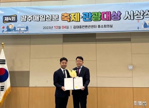 [½Åµ¿¾Æ¹æ¼Û ¼øÃµ=±è¿ëÈÆ ±âÀÚ] ¼øÃµ½Ã(½ÃÀå ³ë°ü±Ô)´Â 4ÀÏ ±¤ÁÖ¸ÅÀϽŹ®ÀÌ ÁÖÃÖ․ÁÖ°üÇÏ´Â Á¦4ȸ ±¤ÁÖ¸ÅÀϽŹ® ÃàÁ¦․°ü±¤ ´ë»ó¿¡¼­¡®Á¾ÇÕ´ë»ó¡¯À» ¼ö»óÇß´Ù°í ¹àÇû´Ù. ¿ÃÇØ·Î 4ȸ°¸¦ ¸ÂÀº¡®±¤ÁÖ¸ÅÀϽŹ® ÃàÁ¦․°ü±¤ ´ë»ó¡¯Àº Áö¿ª ÃàÁ¦ ¹× °ü±¤»ê¡¦