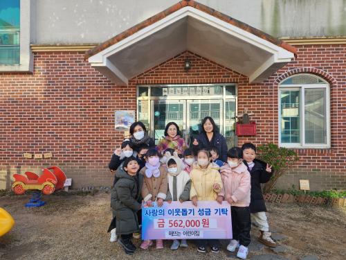 [½Åµ¿¾Æ¹æ¼Û´º½º=±èÁÖ¿¬±âÀÚ] ±èÇØ½Ã ÀåÀ¯1µ¿ ÇàÁ¤º¹Áö¼¾ÅÍ´Â 4ÀÏ ¡®Çضߴ ¾î¸°ÀÌÁý¡¯¿¡¼­ °ü³» ¾î·Á¿î Àú¼ÒµæÃþ ´ë»óÀÚµéÀ» À§ÇØ ¼º±Ý 56¸¸ 2õ ¿øÀ» ±âŹÇß´Ù°í ¹àÇû´Ù. À̹ø ±âʱÝÀº ¾î¸°ÀÌÁý ¿ø¾Æ 43¸í°ú ±³»çµéÀÌ Âü¿©ÇÑ ¡®¾Æ³ª¹Ù´Ù ¿îµ¿¡¯À» ÅëÇØ ¾òÀº ¼öÀÍ¡¦