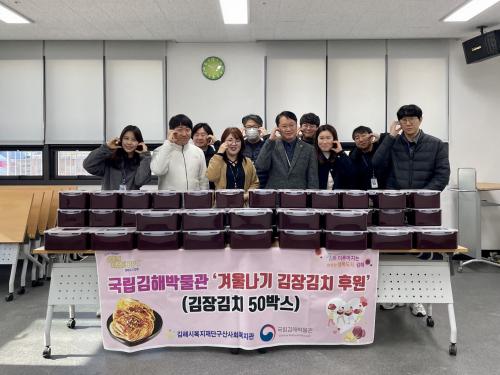 [½Åµ¿¾Æ¹æ¼Û´º½º=±èÁÖ¿¬±âÀÚ] ±¹¸³ ±èÇØ ¹Ú¹°°ü(°üÀå À±Çü¿ø)Àº 12¿ù 4ÀÏ(¿ù)¿¡ (Àç)±èÇØ½Ã º¹Áö Àç´Ü(´ëÇ¥ÀÌ»ç ÃÖÁ¤±Ô) ±¸»ê »çȸ º¹Áö°üÀ¸·Î Àú¼ÒµæÃþÀÇ °Ü¿ï ³ª±â¸¦ À§ÇÑ ±èÀå ±èÄ¡ 50¹Ú½º¸¦ Àü´ÞÇÏ¿´´Ù. À̳¯ Àü´ÞµÈ ±èÀå ±èÄ¡´Â ¹Ú¹°°ü Á÷¿øµéÀÇ ÈÄ¿ø±Ý ¸ð±Ý Ȱ¡¦