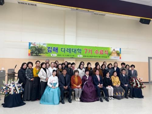 [½Åµ¿¾Æ¹æ¼Û´º½º=±èÁÖ¿¬±âÀÚ] ±èÇØ½Ã´Â 5ÀÏ ±èÇØ½Ãµµ½ÃÀç»ýÁö¿ø¼¾ÅÍ ´Ù¸ñÀû °­´ç¿¡¼­ 2023³â ±èÇØ ´Ù·Ê ´ëÇÐ 7±â °úÁ¤À» À̼öÇÑ 34¸í ±³À°»ýµéÀÇ ¼ö·á½ÄÀ» °³ÃÖÇß´Ù. À̹ø ±³À°Àº Â÷ ¹®È­¸¦ À̲ø¾î°¥ ÇÙ½É ÀÎÀç ¾ç¼ºÀ» À§ÇØ (»ç)°¡¾ßÂ÷Àο¬ÇÕȸ¿¡¼­ ÁÖ°üÇÑ ±³À°À¸·Î¡¦