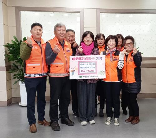[½Åµ¿¾Æ¹æ¼Û ÇÔ¾È=À̽ŵ¿±âÀÚ]ÇÔ¾È °¡¾ßÀ¾ ³²³àÀÇ¿ë¼Ò¹æ´ë(´ëÀå À±ÁøÈñ, ÀÌÀμ÷)´Â 6ÀÏ °¡¾ßÀ¾ÇàÁ¤º¹Áö¼¾Å͸¦ ¹æ¹®ÇØ ±º³» Àú¼Òµæ°èÃþÀ» À§ÇÑ ¼º±Ý 100¸¸ ¿øÀ» Àü´ÞÇß´Ù. °¡¾ßÀ¾ ³²³àÀÇ¿ë¼Ò¹æ´ë´Â Áö¿ª ÁÖ¹ÎÀÇ ¾ÈÀüÀ» Ã¥ÀÓÁö´Â °ÍÀº ¹°·Ð ¸Å³â Á¤±âÀûÀÎ ±âºÎ¿Í ȯ°æ¡¦