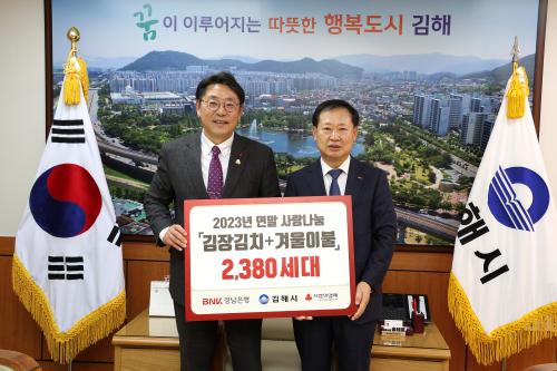 [½Åµ¿¾Æ¹æ¼Û´º½º=ÃÖ¼ÛÈ­±âÀÚ] BNK °æ³²ÀºÇà(ÀºÇàÀå ¿¹°æÅ¹)Àº 7ÀÏ ±èÇØ½Ã¸¦ ¹æ¹®ÇÏ¿© °ü³» ¾î·Á¿î ÀÌ¿ôÀ» À§ÇÑ ±èÄ¡(3kg) 6,800¹Ú½º¿Í °Ü¿ïÀÌºÒ 80ä, ÃÑ 3õ¸¸¿ø »ó´çÀÇ ¼ºÇ°À» ±âŹÇß´Ù. BNK °æ³²ÀºÇà¿¡¼­´Â 2005³âºÎÅÍ ¸Å³â °Ü¿ïÀÌ µÇ¸é ±èÀå±èÄ¡¿Í °Ü¿ïÀ̺ÒÀ» ±â¡¦