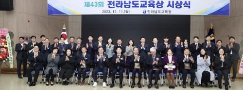 [½Åµ¿¾Æ¹æ¼Û Àü³²¿©¼ö=À̽ŵ¿±âÀÚ]Àü¶ó³²µµ±³À°Ã»ÀÌ 12¿ù 11ÀÏ(¿ù) Á¦43ȸ Àü¶ó³²µµ±³À°»ó ½Ã»ó½ÄÀ» °®°í ¼ö»óÀÚ·Î ¼±Á¤µÈ 5¸í¿¡°Ô ǥâÀå°ú ºÎ»óÀ» ¼ö¿©Çß´Ù. Àü¶ó³²µµ±³À°»óÀº ¡®Àü¶ó³²µµ±³À°°¨ ǥ⠵ °üÇÑ Á¶·Ê¡¯¿¡ µû¶ó µµ¹ÎÀÇ »çÇ¥°¡ µÇ°í Àü¶ó³²µµ ±³À° ¹ß¡¦