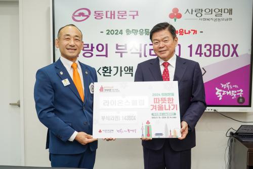 [½Åµ¿¾Æ¹æ¼Û µ¿´ë¹®=À̽ŵ¿±âÀÚ]µ¿´ë¹®±¸´Â 13ÀÏ ¿ÀÀü ±¹Á¦¶óÀ̿½ºÇùȸ 354-CÁö±¸(ÃÑÀç ÀÓÈ£¿Ï)°¡ Ãß¿î °Ü¿ï ¾î·Á¿î ÀÌ¿ôÀ» À§ÇØ ¶ó¸é 143»óÀÚ(ȯ°¡¾× 300¸¸ ¿ø »ó´ç)¸¦ ±âŹÇß´Ù°í ¹àÇû´Ù. ±¸Ã» 5Ãþ Á¢°ß½Ç¿¡¼­ ÁøÇàµÈ ±âŹ½Ä¿¡´Â ÀÌÇÊÇü µ¿´ë¹®±¸Ã»Àå°ú ±¹Á¦¶óÀ̿¡¦