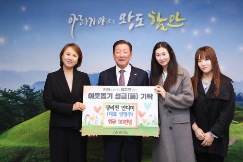[½Åµ¿¾Æ¹æ¼Û ÇÔ¾È=À̽ŵ¿±âÀÚ]ÇԾȱºÀº 13ÀÏ Ä¥¿øÀ¾ û³â´ÜüÀÎ ±¤·Áõ ¾È´Ù¹Ì(´ëÇ¥ ¾ç¸íÁÖ)¿¡¼­ ¾î·Á¿î ÀÌ¿ôÀÇ µû¶æÇÑ °Ü¿ï³ª±â¸¦ À§ÇÑ ¼º±Ý 30¸¸ ¿øÀ» ±âŹÇß´Ù°í ¹àÇû´Ù. À̳¯ ±âŹ½Ä¿¡´Â Á¶±ÙÁ¦ ÇԾȱº¼ö¿Í ±¤·Áõ ¾È´Ù¹Ì ¾ç¸íÁÖ ´ëÇ¥ ¿Ü °ü°èÀÚµéÀÌ Âü¼®ÇßÀ¸¸ç¡¦