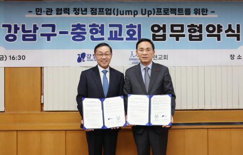 [½Åµ¿¾Æ¹æ¼Û °­³²=À̽ŵ¿±âÀÚ]°­³²±¸°¡ 15ÀÏ ÃæÇö±³È¸(´ãÀÓ¸ñ»ç ÇѱԻï)¿Í ÇÔ²² û³â ÀÏÀÚ¸® âÃâÀ» À§ÇÑ ¾÷¹«Çù¾àÀ» ü°áÇß´Ù. ¾ç ±â°üÀº °­³²±¸ û³â¿¡°Ô ¸ÂÃãÇü ÀÏÀÚ¸® ±³À° Á¦°øÀ» ÅëÇØ »çȸÁøÃâÀ» ¾Õ´ç±â´Â ¡®Ã»³â Á¡ÇÁ¾÷(Jump-Up) ÇÁ·ÎÁ§Æ®¡¯¸¦ À§ÇØ »óÈ£ Çù·Â¡¦