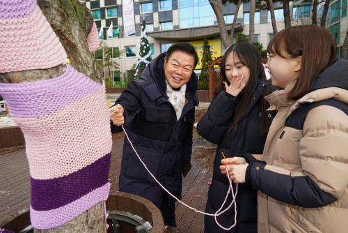 [½Åµ¿¾Æ¹æ¼Û µ¿´ë¹®=À̽ŵ¿±âÀÚ]µ¿´ë¹®±¸(±¸Ã»Àå ÀÌÇÊÇü)´Â 16ÀÏ Å¬¶ó¶û½º(´ëÇ¥ÀÌ»ç ¹ÚÄ¡¿í) ÁÖÃÖ·Î °Ü¿ï³ª¹« ¿Ê ÀÔÈ÷±â Ȱµ¿ÀÎ °ø°ø¿¹¼ú ÇÁ·ÎÁ§Æ® ¡®Purple Garden with Clarins¡¯¸¦ ±¸Ã» ±¤Àå¿¡¼­ ÁøÇàÇß´Ù°í ¹àÇû´Ù. ±¸´Â Áö¿ª»çȸ ³ª´® ¹®È­ È®»êÀ» À§ÇØ Å¬¶ó¶û½º¡¦
