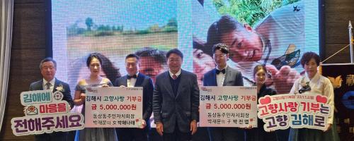 [½Åµ¿¾Æ¹æ¼Û´º½º=±èÁÖ¿¬±âÀÚ] ±èÇØ½Ã´Â ¹ÚÀç¹® µ¿»óµ¿ÁÖ¹ÎÀÚġȸÀåÀÇ ÀÚ³àÀÎ ÇØ³ª·¡(37), Áø¿±(35)¾¾°¡ °íÇâ»ç¶û±âºÎ±Ý °¢ 500¸¸¿ø¾¿ ÃÑ 1,000¸¸¿øÀ» ±âŹÇß´Ù°í 18ÀÏ ¹àÇû´Ù. ¹Ú ÁÖ¹ÎÀÚġȸÀåÀº µ¿»óµ¿ ¹ßÀü°ú ÁÖ¹ÎÀ» À§ÇØ ¸¹Àº Ȱµ¿À» Çϰí ÀÖÀ¸¸ç Áö³­ 7~8¿ù¿¡µµ¡¦