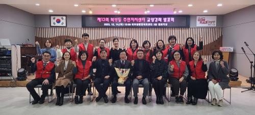 [½Åµ¿¾Æ¹æ¼Û´º½º=±èÁÖ¿¬±âÀÚ] ±èÇØ½Ã ºÏºÎµ¿ ÁÖ¹ÎÀÚġȸ(ȸÀå ±è¸í±Ô)´Â Áö³­ 14ÀÏ ºÏºÎµ¿ ÇàÁ¤º¹Áö¼¾ÅÍ¿¡¼­ ÁÖ¹ÎÀÚÄ¡¼¾ÅÍ ±³¾ç°­Á ¼ö°­»ýµéÀÌ ÇÑ ÇØ µ¿¾È °¥°í ´ÛÀº ±â·®À» ¸¾²¯ ÆîÄ£¡¸Á¦13ȸ ºÏºÎµ¿ ÁÖ¹ÎÀÚÄ¡¼¾ÅÍ ÀÛǰ¹ßǥȸ¡¹°¡ ¼ºÈ²¸®¿¡ °³ÃֵǾú´Ù°í ¹àÇû´Ù. ¡¦