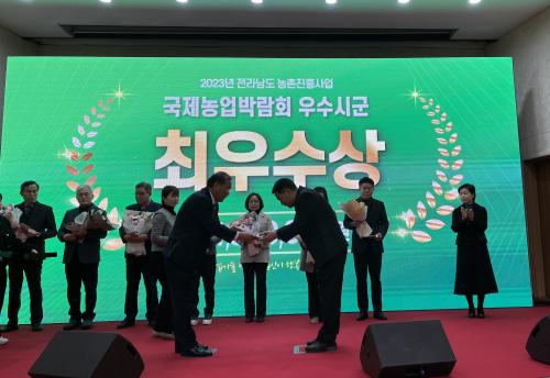 [½Åµ¿¾Æ¹æ¼Û=¿Ïµµ À̼±Á¾ ±âÀÚ] ¿Ïµµ±º(±º¼ö ½Å¿ìö)Àº Áö³­ 19ÀÏ ¡¸2023³â Àü³² ³óÃÌÁøÈï»ç¾÷ Á¾ÇÕÆò°¡È¸¡¹¿¡¼­ ±¹Á¦³ó¾÷¹Ú¶÷ȸ ºÐ¾ß ¡®ÃÖ¿ì¼ö»ó¡¯, ¼öÃâ ³ó¾÷ ºÐ¾ß¿¡¼­ ¡®¿ì¼ö»ó¡¯À» ¼ö»óÇß´Ù. Àü³²³ó¾÷±â¼ú¿ø¿¡ µû¸£¸é ¿Ïµµ±ºÀº 10³â µ¿¾È 1,000Åæ ±Ô¸ðÀÇ ¡¦