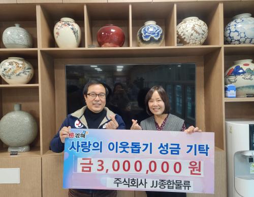 [½Åµ¿¾Æ¹æ¼Û´º½º=ÃÖ¼ÛÈ­±âÀÚ] ±èÇØ½Ã ÀåÀ¯1µ¿ ÇàÁ¤º¹Áö¼¾ÅÍ´Â Áö³­ 19ÀÏ(È­) ¢ß JJÁ¾ÇÕ¹°·ù(´ëÇ¥ ¿ÀÀçÁø)¿¡¼­ °ü³» Àú¼Òµæ ¼¼´ë¸¦ À§ÇØ ¼º±Ý 300¸¸¿øÀ» ±âŹÇß´Ù°í ¹àÇû´Ù. ¢ßJJ Á¾ÇÕ¹°·ù´Â ÀåÀ¯1µ¿¿¡ À§Ä¡ÇÑ ¹°·ù¡¤¿î¼Û¡¤¹è¼Û¾÷ü·Î ²ÙÁØÈ÷ ¼ºÀåÇÏ´Â ±â¾÷À¸·Î Áö¿ªº¹¡¦