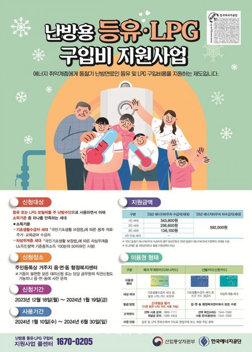 [½Åµ¿¾Æ¹æ¼Û´º½º=ÃÖ¼ÛÈ­±âÀÚ] »ê¾÷Åë»óÀÚ¿øºÎ´Â 18ÀϺÎÅÍ 1¿ù19ÀϱîÁö Àü±¹ ÇàÁ¤º¹Áö¼¾ÅÍ¿¡¼­ µîÀ¯¡¤LPG¸¦ ÀÌ¿ëÇØ ³­¹æÀ» ÇÏ´Â Ãë¾à°èÃþ °¡±¸¸¦ ´ë»óÀ¸·Î µîÀ¯¡¤LPG ³­¹æºñ Áö¿ø½ÅûÀ» Á¢¼öÇÑ´Ù°í ¹àÇû½À´Ï´Ù. ÀÌ´Â Áö³­ 11¿ù2ÀÏ ºñ»ó°æÁ¦Àå°üȸÀǽà ¹ßÇ¥ÇÑ ¡®µ¿Àý±â¡¦