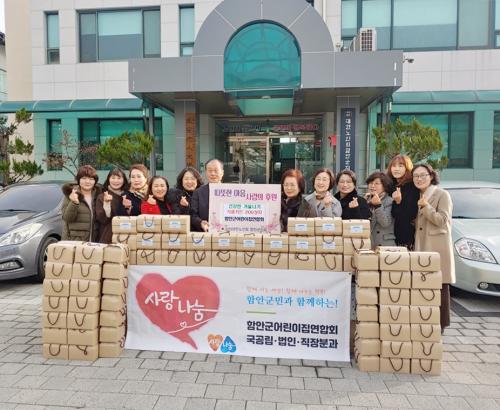 [½Åµ¿¾Æ¹æ¼Û ÇÔ¾È=À̽ŵ¿±âÀÚ]ÇԾȱº ¾î¸°ÀÌÁý¿¬ÇÕȸ(ȸÀå ¹ÚÇý¿µ)°¡ ´ëÇѳëÀÎȸ ÇԾȱºÁöȸ(ÁöȸÀå ÀÌÇе¿)¿¡ µ¶°Å¾î¸£½ÅÀ» À§ÇÑ °£½Ä 300»óÀÚ¸¦ ±âŹÇß´Ù. ¹°Ç° Àü´Þ½ÄÀº Á÷Á¢ °£½ÄÀ» Á¦ÀÛÇÑ ¾î¸°ÀÌÁý¿¬ÇÕȸ¿ø 10¿© ¸í°ú ´ëÇѳëÀÎȸ ÇԾȱºÁöȸ ÀÓ¿ø µîÀÌ Âü¼®ÇÑ¡¦