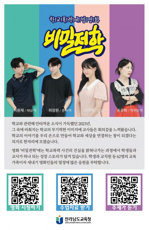 [½Åµ¿¾Æ¹æ¼Û Àü³²¿©¼ö=À̽ŵ¿±âÀÚ]Àü¶ó³²µµ±³À°Ã»ÀÌ Çб³Æø·Â¿¹¹æÀ» ÁÖÁ¦·Î ¸¸µç ¿µÈ­ 'ºñ¹ÐÀüÇÐ'ÀÌ Áö³­ 14Àϰú 18ÀÏ È£Æò ¼Ó¿¡ ½Ã»çȸ¸¦ ¸¶Ä¡°í ´©±¸³ª º¼ ¼ö ÀÖµµ·Ï ¼ö¾÷ÀÚ·á¿Í ÇÔ²² °ø°³µÈ´Ù. À̹ø ¿µÈ­ ¡®ºñ¹ÐÀüÇС¯ ½Ã»çȸ¿¡´Â ´«ÀÌ ¿À´Â ±â»ó »óȲ¿¡µµ ºÒ±¸¡¦