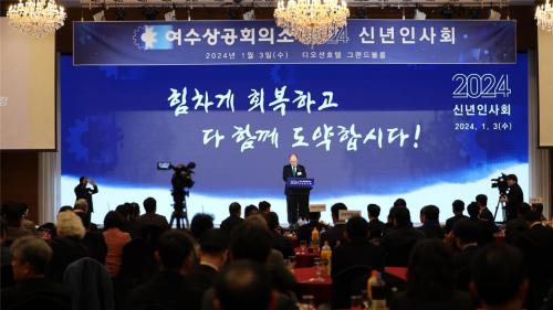 [½Åµ¿¾Æ¹æ¼Û¿©¼ö=±è±â³² ±âÀÚ] ¿©¼ö»ó°øÈ¸ÀǼÒ(ȸÀå ÀÌ¿ë±Ô)°¡ »õÇØÀÇ È­ÇÕ°ú °æÁ¦ÀÎ‧»ó°øÀεéÀÌ ÈûÀ» ÇÕÃÄ ´ÙÇÔ²² µµ¾àÇÒ °ÍÀ» ´ÙÁüÇÏ´Â 2024 ½Å³âÀλçȸ¸¦ °³ÃÖÇß´Ù°í ¹àÇû´Ù. 2024³â °©Áø³â(Ë£òãÒ´) »õÇØ 1¿ù 3ÀÏ(¼ö) ¿ÀÀü 11½Ã, ¿©¼ö µð¿À¼ÇÈ£ÅÚ ±×·£µå¡¦