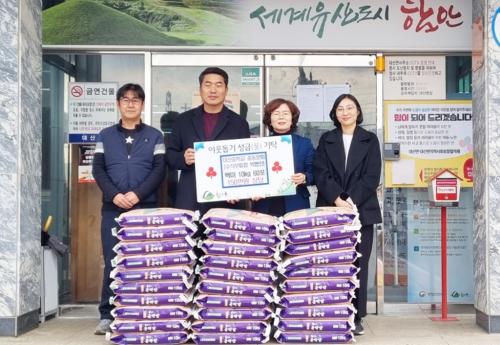 [½Åµ¿¾Æ¹æ¼Û ÇÔ¾È=À̽ŵ¿±âÀÚ]ÇԾȱº ´ë»êÁßÇб³ Ãѵ¿¹®È¸(¼ö¼®ºÎȸÀå ¹Úº´Âù)´Â Áö³­ 3ÀÏ ¾î·Á¿î ÀÌ¿ôÀ» À§ÇÑ ¹é¹Ì(10kg) 60Æ÷(150¸¸ ¿ø »ó´ç)¸¦ ´ë»ê¸é»ç¹«¼Ò¿¡ Àü´ÞÇϸç Áö¿ª»çȸ¸¦ À§ÇÑ ³ª´®À» ½ÇõÇß´Ù. À̳¯ ±âŹµÈ ¹é¹Ì´Â ´ë»ê¸é ±º³» µ¶°Å³ëÀÎ, º¹Áö»ç°¢Áö¡¦