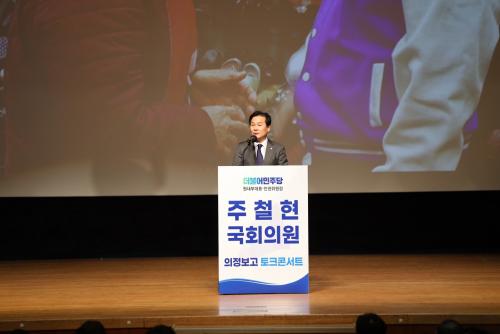 [½Åµ¿¾Æ¹æ¼Û¿©¼ö=±è±â³² ±âÀÚ] ´õºÒ¾î¹ÎÁÖ´ç ¿©¼ö½Ã°© ÁÖöÇö ±¹È¸ÀÇ¿ø(¿ø³»ºÎ´ëÇ¥ °â ÀαÇÀ§¿øÀå)ÀÌ 6ÀÏ ¿©¼ö½Ã¹Îȸ°ü¿¡¼­ ½Ã¹Î ¹× ´ç¿ø 2,500¿©¸íÀÌ Âü¼®ÇÑ °¡¿îµ¥ ¡®Á¦21´ë ±¹È¸ ÃÑÁ¤¸® ÀÇÁ¤º¸°í ÅäÅ©Äܼ­Æ®¡¯¸¦ ¼ºÈ²¸®¿¡ °³ÃÖÇß´Ù. À̳¯ ÀÇÁ¤º¸°íȸ Àå³»´Â ¹ß¡¦