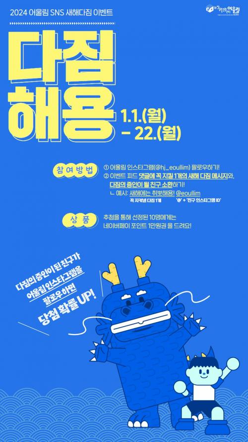[½Åµ¿¾Æ¹æ¼Û´º½º=±èÁÖ¿¬±âÀÚ] ±èÇØ½Ã È­Á¤»ýȰ¹®È­¼¾ÅÍ ¾î¿ï¸²(ÀÌÇÏ ¾î¿ï¸²)Àº »õÇØ¸¦ ¸Â¾Æ 1~22ÀÏ ÀνºÅ¸±×·¥¿¡¼­ »õÇØ ´ÙÁü ÁõÀÎ ¼Òȯ SNS À̺¥Æ® ¡®´ÙÁüÇØ¿ë¡¯À» ÁøÇàÇÑ´Ù°í 2ÀÏ ¹àÇû´Ù. À̹ø À̺¥Æ®´Â »õÇØ¸¦ ¸Â¾Æ ½Å³â ´ÙÁü°ú Æ÷ºÎ¸¦ °¡Á·, ¿¬ÀÎ, Ä£±¸ µî ÁÖº¯¡¦