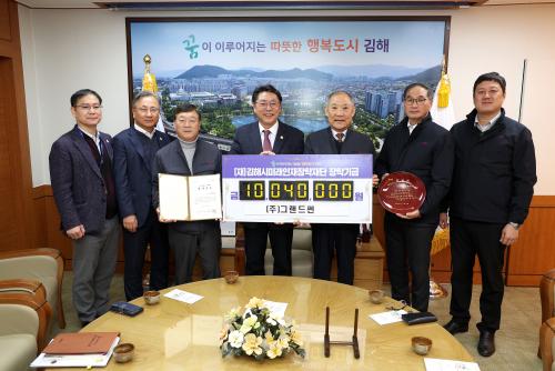 [½Åµ¿¾Æ¹æ¼Û´º½º=±èÁÖ¿¬±âÀÚ] ±èÇØ½Ã¹Ì·¡ÀÎÀçÀåÇÐÀç´Ü(ÀÌ»çÀå ÇöÁ¾¿ø)Àº 4ÀÏ ¢ß±×·£µå½ã(´ëÇ¥ À§³­±¸)¿¡¼­ ÀåÇбâ±Ý 1004¸¸¿øÀ» ±âŹÇß´Ù°í ¹àÇû´Ù. ±èÇØ ÁÖÃ̸鿡 À§Ä¡ÇÑ ¢ß±×·£µå½ãÀº 2018³â ¼³¸³ÇÑ ½ÅÀç»ý¿¡³ÊÁö ±â¾÷À¸·Î ±¹³» ½ÅÀç»ý¿¡³ÊÁö Çٽɻç¾÷ÀΠž籤 ¹ß¡¦