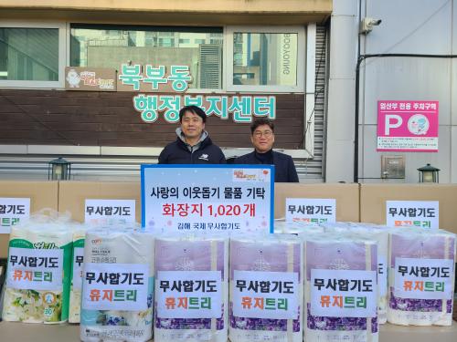 [½Åµ¿¾Æ¹æ¼Û´º½º=±èÁÖ¿¬±âÀÚ] ±èÇØ »ï°èµ¿ ¼ÒÀç ±¹Á¦¹«»çÇձ⵵(°üÀå È«»óÈñ)¿¡¼­ Áö³­ 5ÀÏ, °ü³» ¾î·Á¿î ÀÌ¿ôµé À§ÇØ ½á´Þ¶ó¸ç µÎ·ç¸¶¸® È­ÀåÁö 1,000¿©°³¸¦ ºÏºÎµ¿ÇàÁ¤º¹Áö¼¾ÅÍ¿¡ ±âŹÇß´Ù. À̳¯ ±âʹÞÀº ¹°Ç°Àº ±¹Á¦¹«»çÇձ⵵ °üÀå´ÔÀ» ºñ·ÔÇÑ Çձ⵵ ¼ö·Ã»ýµéÀÌ¡¦