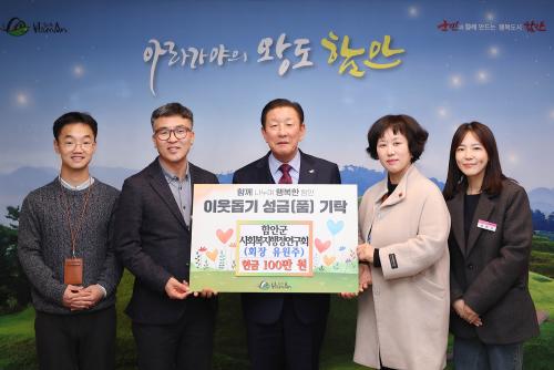 [½Åµ¿¾Æ¹æ¼Û ÇÔ¾È=À̽ŵ¿±âÀÚ]ÇԾȱº»çȸº¹ÁöÇàÁ¤¿¬±¸È¸(ȸÀå À¯¿øÁÖ)´Â Áö³­ 9ÀÏ ¾î·Á¿î ÀÌ¿ôÀ» µ½±â À§ÇÑ ¼º±Ý 100¸¸ ¿øÀ» ±âŹÇß´Ù. À̳¯ ±âŹ½Ä¿¡´Â Á¶±ÙÁ¦ ÇԾȱº¼ö¿Í ÇԾȱº»çȸº¹ÁöÇàÁ¤¿¬±¸È¸ À¯¿øÁÖ È¸Àå ¹× °ü°èÀÚµéÀÌ Âü¼®ÇßÀ¸¸ç, ±âŹµÈ ¼º±ÝÀº °æ³²»çȸ¡¦