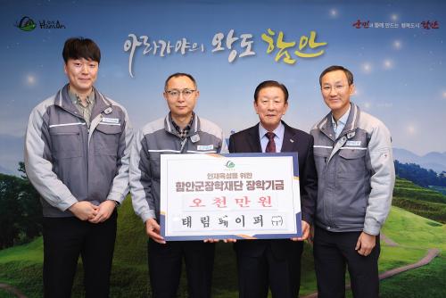 [½Åµ¿¾Æ¹æ¼Û ÇÔ¾È=À̽ŵ¿±âÀÚ]ÇԾȱº Ä¥¼­¸é ¼ÒÀç Ÿ²ÆäÀÌÆÛ¢ßÀº 15ÀÏ ÇԾȱºÀåÇÐÀç´Ü¿¡ Áö¿ªÀÎÀç À°¼ºÀ» À§ÇÑ ÀåÇбâ±Ý 5000¸¸¿øÀ» ±âŹÇß´Ù. À̳¯ ±âŹ½Ä¿¡´Â Ÿ²ÆäÀÌÆÛ¢ß ±è¿µ°ï °øÀåÀå, ÃÖ¼ø½Ä Áö¿øÆÀÀå, ÃÖµ¿Çö ´ë¸®°¡ Âü¼®ÇØ Áö¿ªÀÇ ±³À° ¹ßÀü°ú ÀÎÀç ¾ç¼ºÀ»¡¦