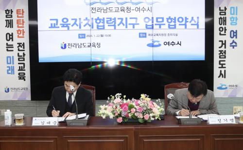 [½Åµ¿¾Æ¹æ¼Û Àü³²¿©¼ö=À̽ŵ¿±âÀÚ]Àü¶ó³²µµ¿©¼ö±³À°Áö¿øÃ»(±³À°Àå ¼­±Ý¿­)Àº 1¿ù 22ÀÏ Áö¿ª ±³À°»ýŰè Á¶¼º ¹× ±³À°·Â Á¦°í¸¦ À§ÇÑ Àü¶ó³²µµ±³À°Ã»-¿©¼ö½Ã ±³À°ÀÚÄ¡Çù·ÂÁö±¸ ¾÷¹«Çù¾à(MOU)À» Áö¿øÃ» ÁßȸÀǽǿ¡¼­ ü°áÇÏ¿´´Ù. ¾ç ±â°üÀº Àü³² ±³À° ¹ßÀü°ú ¿©¼ö ±³À°¡¦