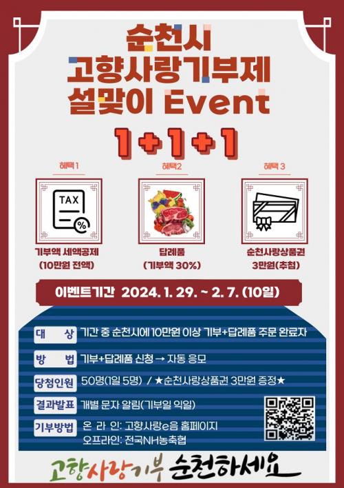¼øÃµ½Ã, ¼³¸ÂÀÌ ¡®°íÇâ»ç¶û±âºÎÁ¦¡¯ 1+1+1 À̺¥Æ® ½Ç½Ã!