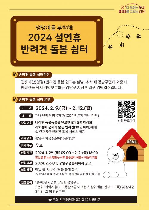 [½Åµ¿¾Æ¹æ¼Û °­³²=À̽ŵ¿±âÀÚ]°­³²±¸°¡ ¿ÃÇØ ½Å±Ô»ç¾÷À¸·Î ¼³ ¸íÀý ±â°£ ¹Ý·Á°ßÀ» ¸Ã±æ ¼ö ÀÖ´Â ½°Å͸¦ ¿î¿µ, 1¿ù 29ÀϺÎÅÍ 2¿ù 2ÀϱîÁö ½Åû Á¢¼ö¸¦ ÇÑ´Ù. 2024³â 1¿ù ±âÁØ °­³²±¸¿¡´Â ¹Ý·Áµ¿¹° 4¸¸¿© ¸¶¸®°¡ µî·ÏµÇ¾î ÀÖÀ¸¸ç, ÀÌ´Â ¼­¿ï½Ã 25°³ ÀÚÄ¡±¸ Áß °¡Àå ¸¹¡¦