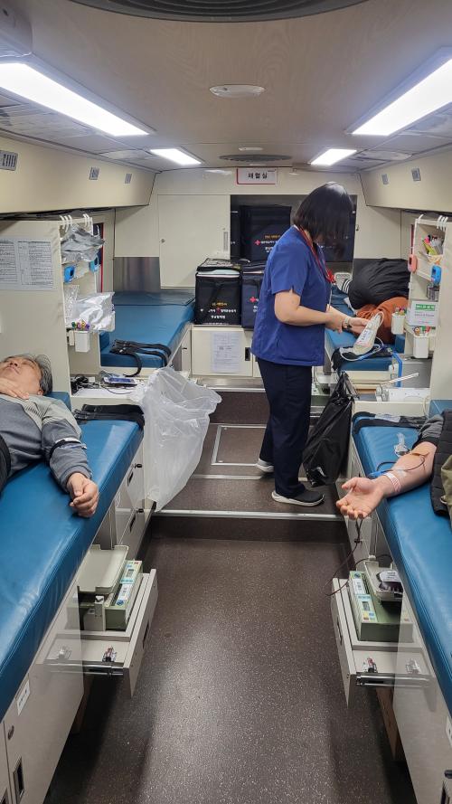 [½Åµ¿¾Æ¹æ¼Û´º½º=±èÁÖ¿¬±âÀÚ] ±èÇØ±³À°Áö¿øÃ»(±³À°Àå ¾ÈÅÂȯ)Àº 29ÀÏ Ç÷¾× ¼ö±Þ¿¡ ¾î·Á¿òÀ» °Þ°í ÀÖ´Â ÀÇ·áÇöÀå¿¡ µµ¿òÀÌ µÇ°íÀÚ 1ºÐ±â ¡®»ç¶ûÀÇ ´ÜüÇåÇ÷¡¯À» ½Ç½ÃÇÏ¿´´Ù. À̳¯ ¡®»ç¶ûÀÇ ´ÜüÇåÇ÷¡¯Àº û»ç ³» ½°ÅÍ¿¡ ¸¶·ÃµÈ °æ³²Ç÷¾×¿ø ÃâÀå ÇåÇ÷ Â÷·®¿¡¼­ Á÷¿ø¡¦