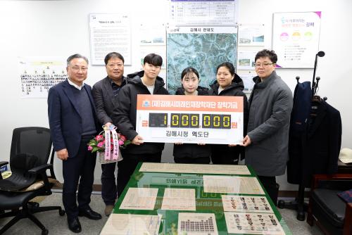 [½Åµ¿¾Æ¹æ¼Û´º½º=ÃÖ¼ÛÈ­±âÀÚ] ±èÇØ½Ã¹Ì·¡ÀÎÀçÀåÇÐÀç´Ü(ÀÌ»çÀå ÇöÁ¾¿ø)Àº 6ÀÏ ±èÇØ½Ãû ¿ªµµ´Ü(°¨µ¶ ±èµµÈñ)¿¡¼­ ÀåÇбâ±Ý 100¸¸¿øÀ» ±âŹÇß´Ù°í ¹àÇû´Ù. Áö³­ÇØ Á÷Àå¿îµ¿°æ±âºÎ ¿ì¼ö ¿î¿µÆÀÀ¸·Î ¼±Á¤µÇ¾î ¹ÞÀº Æ÷»ó±ÝÀÇ ÀϺÎÀÌ¸ç ±èÇØ½Ãû ¿ªµµ´ÜÀº Áö³­ 2022³âºÎÅÍ 3³â¡¦